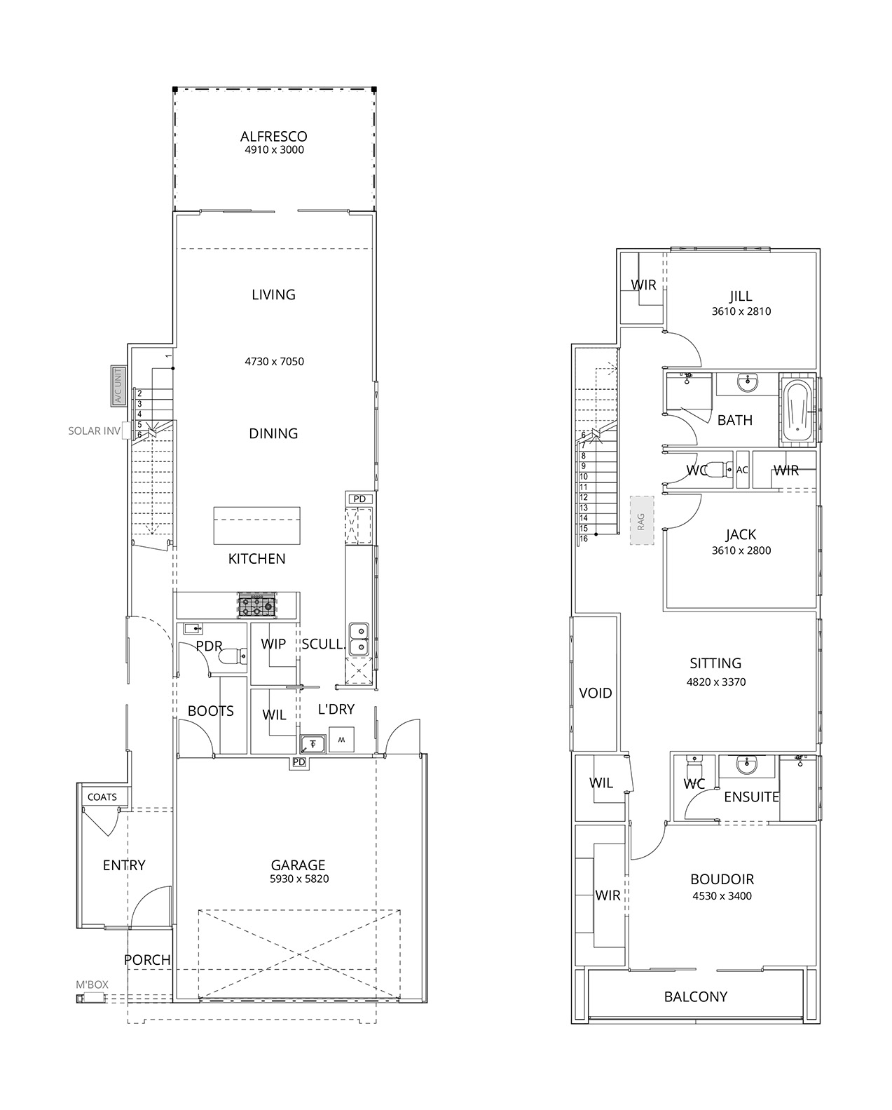 For sticky shoes and busy bags, there is a mud room at the entry that adds practicality. Plus, a void overhead adds a sense of space and brings in a dose of natural light.